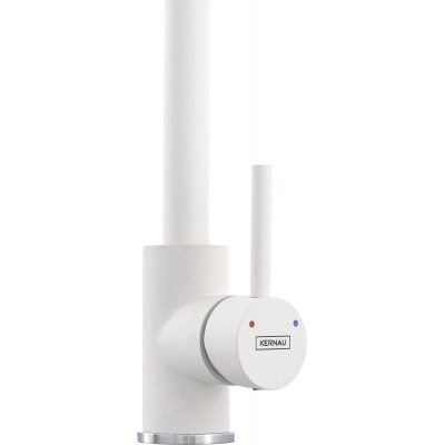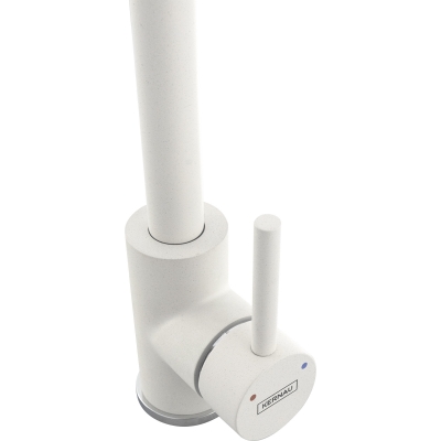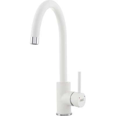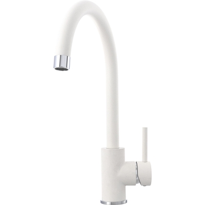 Bateria kuchenna stojąca, montowana na blacie lub na zlewozmywaku. Wylewka stała, obracana w zakresie 360’. Perlator ograniczający zużycie wody o 50%. Głowica ceramiczna 35mm. Wysokość całkowita wylewki 351mm. Zasięg wylewki 216mm. Wykończenie Granit. Do zlewozmywaków granitowych. Kolor Pure White (Śnieżno Biały).