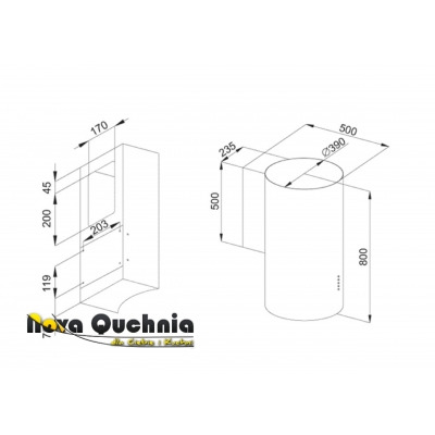 Okap przyścienny, kominowy o szerokości 39cm. 4 poziomy regulacji mocy w tym funkcja Turbo. Sterowanie elektroniczne, przyciski typu Soft Touch. Timer. Wyświetlacz. Kolor wyświetlacza: czerwony. Dwa punkty oświetleniowe LED, o mocy 1W każdy. Zasysanie oparów szczelinowe. Filtr aluminiowy, kasetonowy, przeciwtłuszczowy, przystosowany do mycia w zmywarce. Maksymalna wydajność 767m3/h. Głośność maksymalna 66 dB[A]. Wykończenie w kolorze Stal (Inox). Linia estetyczna: Nowoczesna.