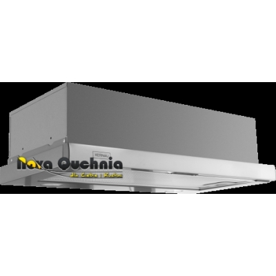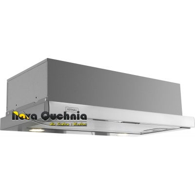 Okap teleskopowy, do zabudowy o szerokości 50cm. 2 poziomy regulacji mocy. Dwa punkty oświetleniowe LED. Podwójny filtr aluminiowy, kasetonowy, przeciwtłuszczowy, przystosowany do mycia w zmywarce. Możliwość pracy jako pochłaniacz lub wyciąg. W pierwszym przypadku konieczność używania filtów węglowych. Wydajność okapu maksymalna 171m3/h. Głośność maksymalna 62 dB[A]. Klasa energetyczna C. Wykończenie frontu Inox i malowana na srebrno obudowa. Linia estetyczna: Nowoczesna.