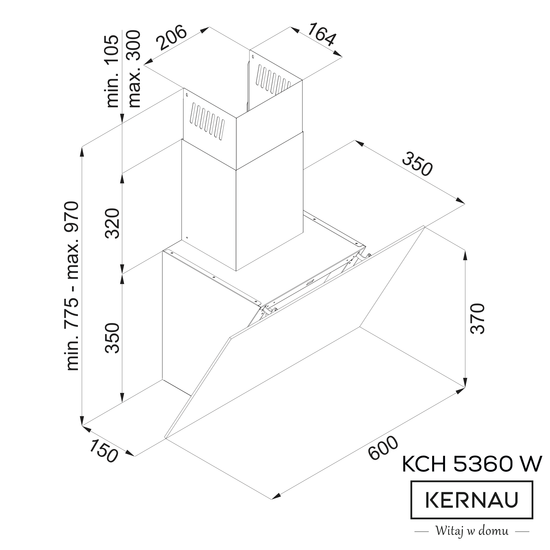 Okap kominowy, przyścienny, o szer. 60cm. Jeden silnik. Elektroniczna regulacja mocy, 3 stopnie pracy wentylatora. Timer. Szczelinowy system zasysania oparów. Sterowanie dotykowe. Wyświetlacz w kolorze białym. Oświetlenie LED. Filtr aluminiowy, kasetonowy, przeciwtłuszczowy, przystosowany do mycia w zmywarce. Możliwość pracy jako pochłaniacz lub wyciąg. W pierwszym przypadku konieczność używania filtów węglowych. Wydajność maksymalna 331m3/h. Głośność maksymalna 67 dB[A]. Klasa energetyczna C. Wykończenie w kolorze Białym. Komin w kolorze Białym.