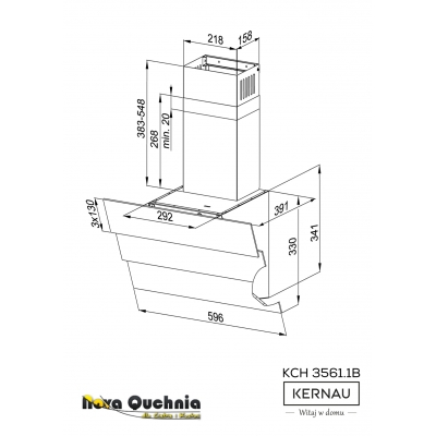 Okap kominowy, przyścienny, o szer. 60cm. Jeden silnik. Mechaniczna regulacja mocy, 3 stopnie pracy wentylatora. Szczelinowy system zasysania oparów. Sterowanie mechaniczne, przyciskami typu Push-Push. Oświetlenie LED. Filtr aluminiowy, kasetonowy, przeciwtłuszczowy, przystosowany do mycia w zmywarce. Możliwość pracy jako pochłaniacz lub wyciąg. W pierwszym przypadku konieczność używania filtów węglowych. Wydajność maksymalna 325m3/h. Głośność maksymalna 61 dB[A]. Klasa energetyczna C. Wykończenie w kolorze Czarnym. Komin w kolorze Czarnym.