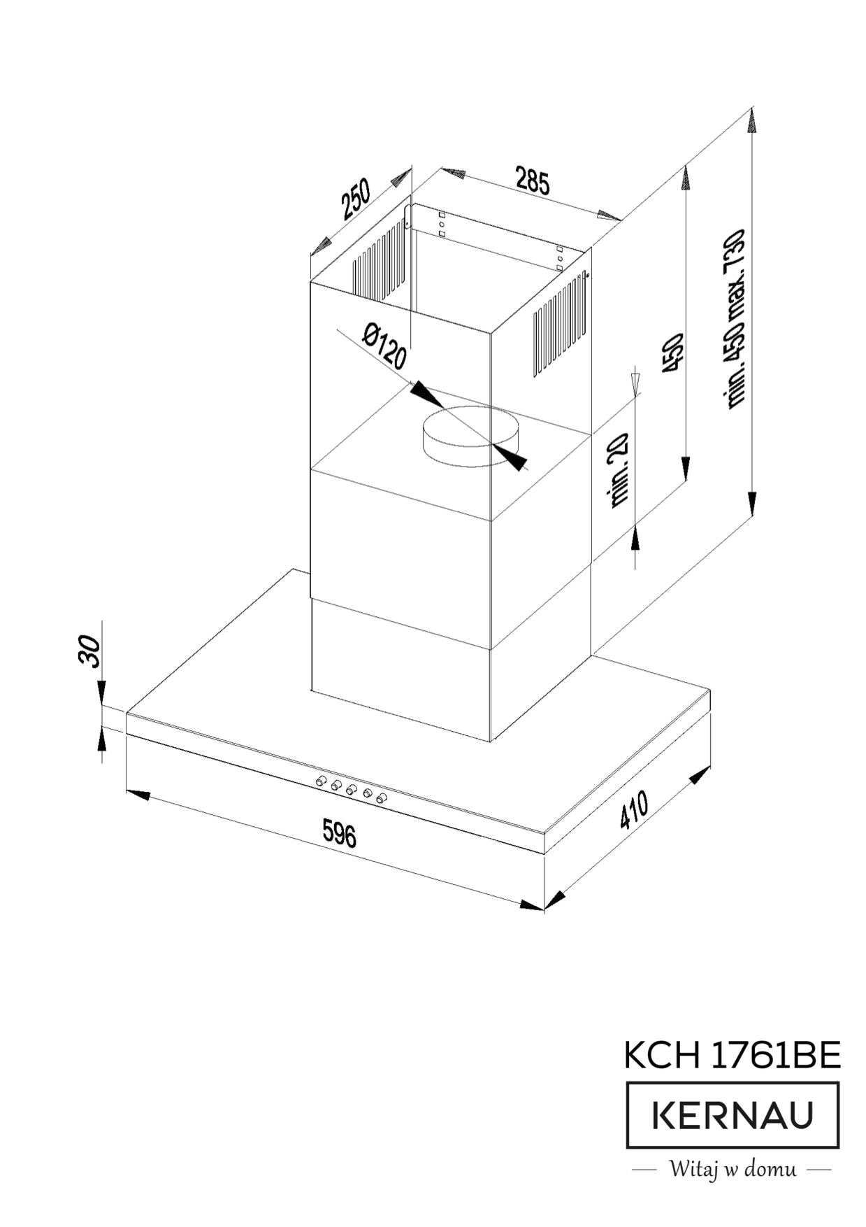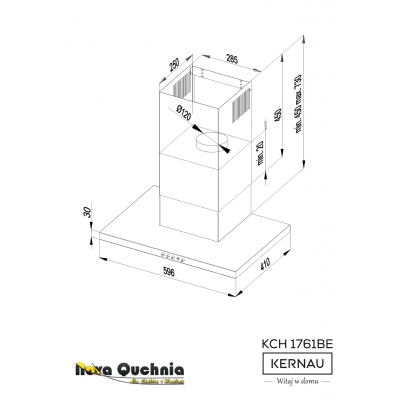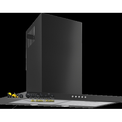 Okap kominowy, przyścienny, o szer. 60cm. Jeden silnik. Mechaniczna regulacja mocy, 3 stopnie pracy wentylatora. Szczelinowy system zasysania oparów. Sterowanie mechaniczne, przyciskami typu Push-Push. Oświetlenie LED. Filtr aluminiowy, kasetonowy, przeciwtłuszczowy, przystosowany do mycia w zmywarce. Możliwość pracy jako pochłaniacz lub wyciąg. W pierwszym przypadku konieczność używania filtów węglowych. Wydajność maksymalna 305m3/h. Głośność maksymalna 69 dB[A]. Klasa energetyczna D. Wykończenie w kolorze Czarnym (stal malowana na czarno). Komin w kolorze Czarnym.
