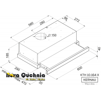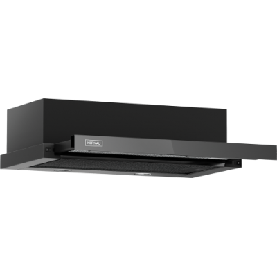 Okap teleskopowy, do zabudowy o szerokości 60cm. 3 poziomy regulacji mocy. Sterowanie mechaniczne, kołyskowe. Dwa punkty oświetleniowe LED. Podwójny filtr aluminiowy, kasetonowy, przeciwtłuszczowy, przystosowany do mycia w zmywarce. Możliwość pracy jako pochłaniacz lub wyciąg. W pierwszym przypadku konieczność używania filtów węglowych. Wydajność okapu maksymalna 277m3/h. Głośność maksymalna 62 dB[A]. Klasa energetyczna C. Wykończenie frontu Czarne szkło i malowana na czarno obudowa. Aluminiowy filtr przeciwtłuszczowy jest w kolorze czarnym tak jak front i obudowa. Linia estetyczna: Nowoczesna.