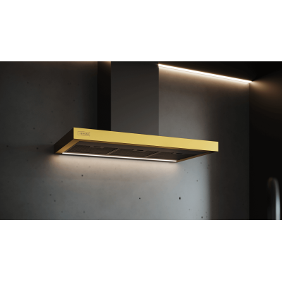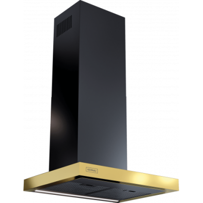 Okap kominowy, przyścienny, o szer. 60cm. Możliwa regulacja wysokości w zakresie 790-1010mm. Jeden silnik. Sterowanie gestami lub pilotem. 4 stopnie pracy wentylatora. Timer. Oświetlenie w postaci paska LED. Regulowana barwa oświetlenia w zakresie 2900-6400 K. Filtr aluminiowy, kasetonowy, przeciwtłuszczowy, przystosowany do mycia w zmywarce. Filtr jest w kolorze czarnym, w takim samym jak obudowa, przez to nie rzuca się w oczy. Wydajność maksymalna 690m3/h. Głośność maksymalna 70 dB[A]. Możliwość pracy jako pochłaniacz lub wyciąg. W pierwszym przypadku konieczność używania filtów węglowych. Klasa energetyczna: A+. Wykończenie w kolorze Czarnym (stal malowana na czarno) + Gold (złoty). Komin w kolorze Czarnym.