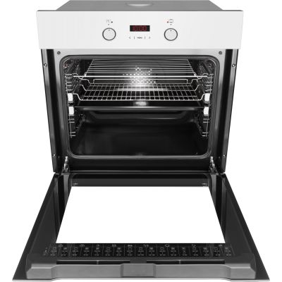 Piekarnik elektryczny, 11-funkcyjny z termoobiegiem 3D. Programator elektroniczny z zegarem cyfrowym, sterowany za pomocą pokręteł typu PUSH-PUSH czyli chowanych w obudowie. TIMER elektroniczny. Wyświetlacz LED. Potrójna szyba w drzwiach z powłoką THERMO-REFLECTIVE. Prowadnice teleskopowe na dwóch poziomach. Wnętrze piekarnika pokryte łatwą do czyszczenia emalią PERFECT CLEAN ENAMEL. Wkłady katalityczne. Oświetlenie wnętrza piekarnika. Grill. Chłodzenie obudowy piekarnika. Drzwi panoramiczne. Zawiasy SOFT-CLOSE. Blokada rodzicielska. Na wyposażeniu piekarnika emaliowana blacha do pieczenia 2szt. i ruszt chromowany 1szt. Zakres temperatur: 50'-250'C. Pojemność piekarnika 77l. Klasa energetyczna A. Wykończenie Białe Szkło. Linia estetyczna: Nowoczesna.